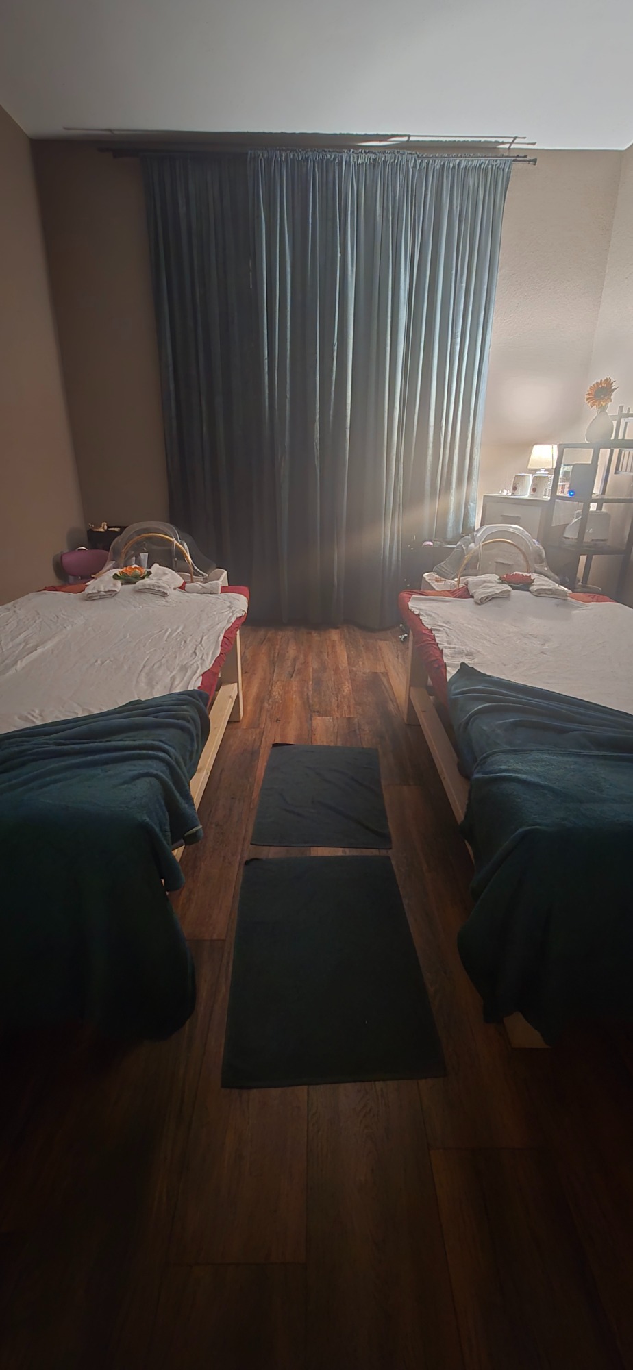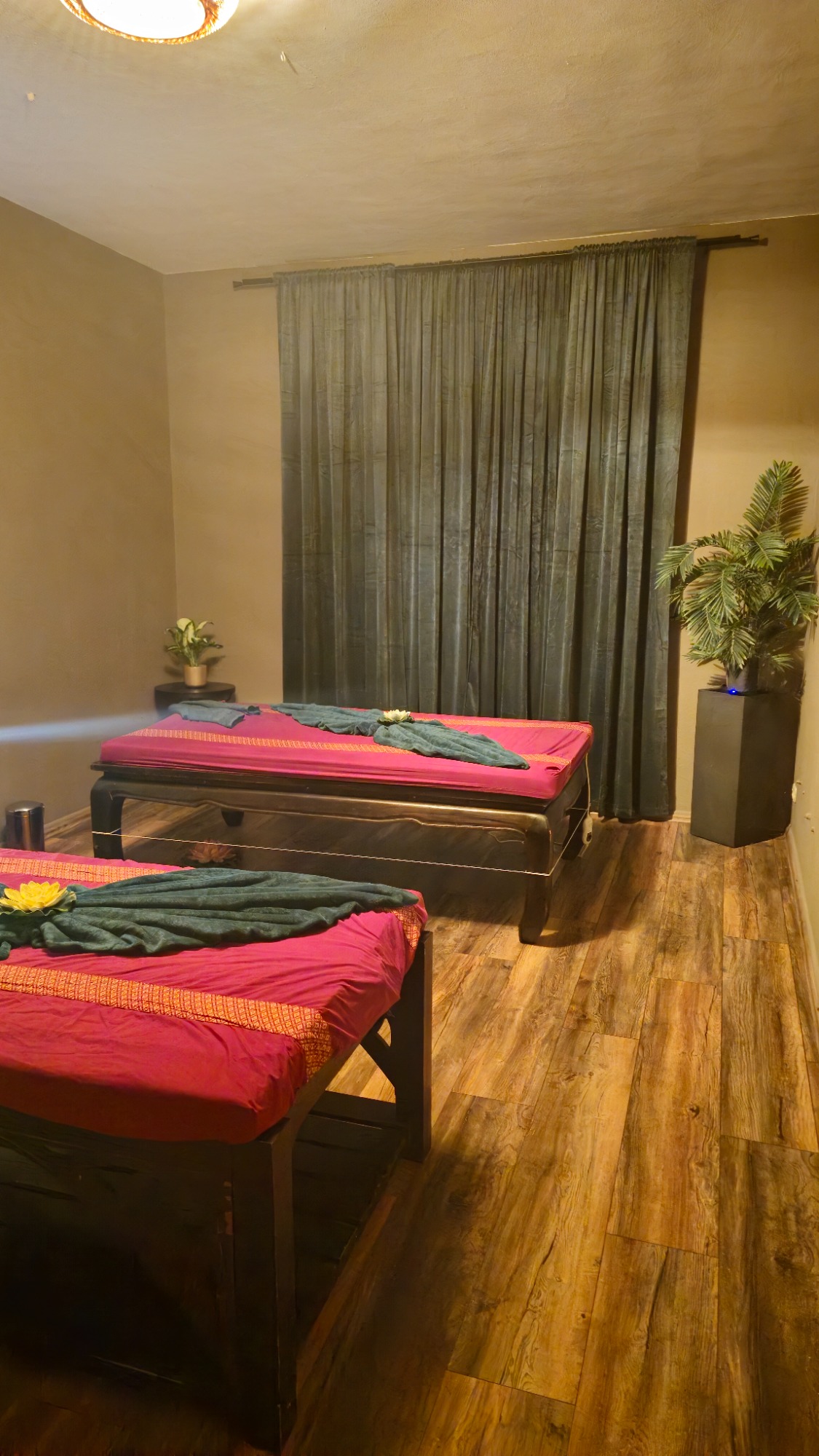 Lassen Sie sich von unseren speziell gestalteten Massageräumen vezaubern – einem Ort der Ruhe und Erholung. Jedes Detail wurde mit Liebe ausgewählt, um eine Atmosphäre der völligen Entspannung zu schaffen. Erleben Sie die wohltuende Thai-Massage in einer Umgebung, die Körper und Geist in Einklang bringt. Kommen Sie nach Bottrop und lassen Sie sich von dieser einzigartigen Auszeit verwöhnen!